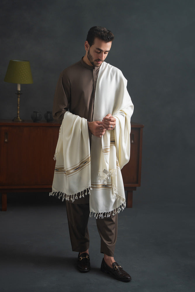 Men's Winter Pashmina Woolen Shawl - (Cream) - JS-02
